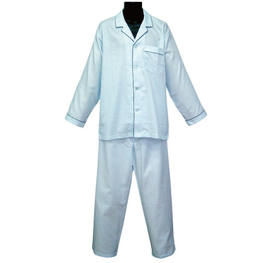 すっきりとしたデザインの紳士パジャマ【10倍ポイント開催中13日(金)am9:59迄】【CELINE】セリーヌジャガードロゴ入りサテン無地メンズ長袖パジャマブルーALL10Feb09